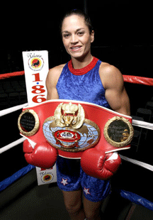 5'3" junior welterweight Sharon "Wild Thing" Anyos from Australia is a boxer, kickboxer and karate competitor. Born on 13 October 1970, she began her love affair with the fight game as a "karate kid". Sharon entered her first tournament when she was six years old, and competed in non-contact karate until she was sixteen.